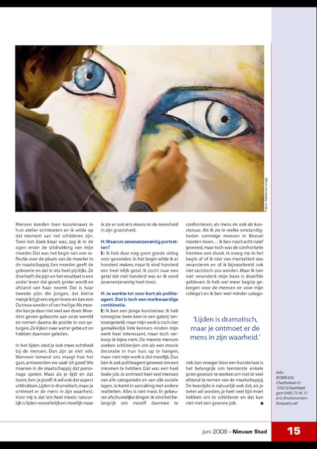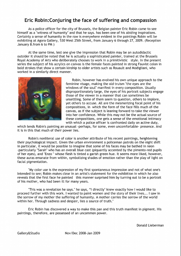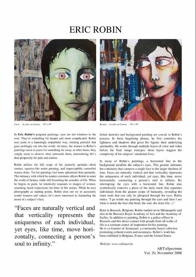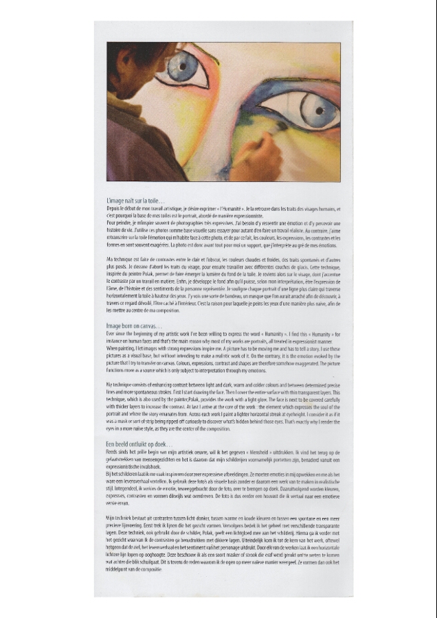 Peintre originaire de Bruxelles, je suis en 1990 « tombé en amour »avec les arts visuels. Après plusieurs années d’expérimentations une « ligne » s’est imposée à moi, inscrite dans le mouvement expressionniste,mêlée à une démarche conceptuelle et symbolique.